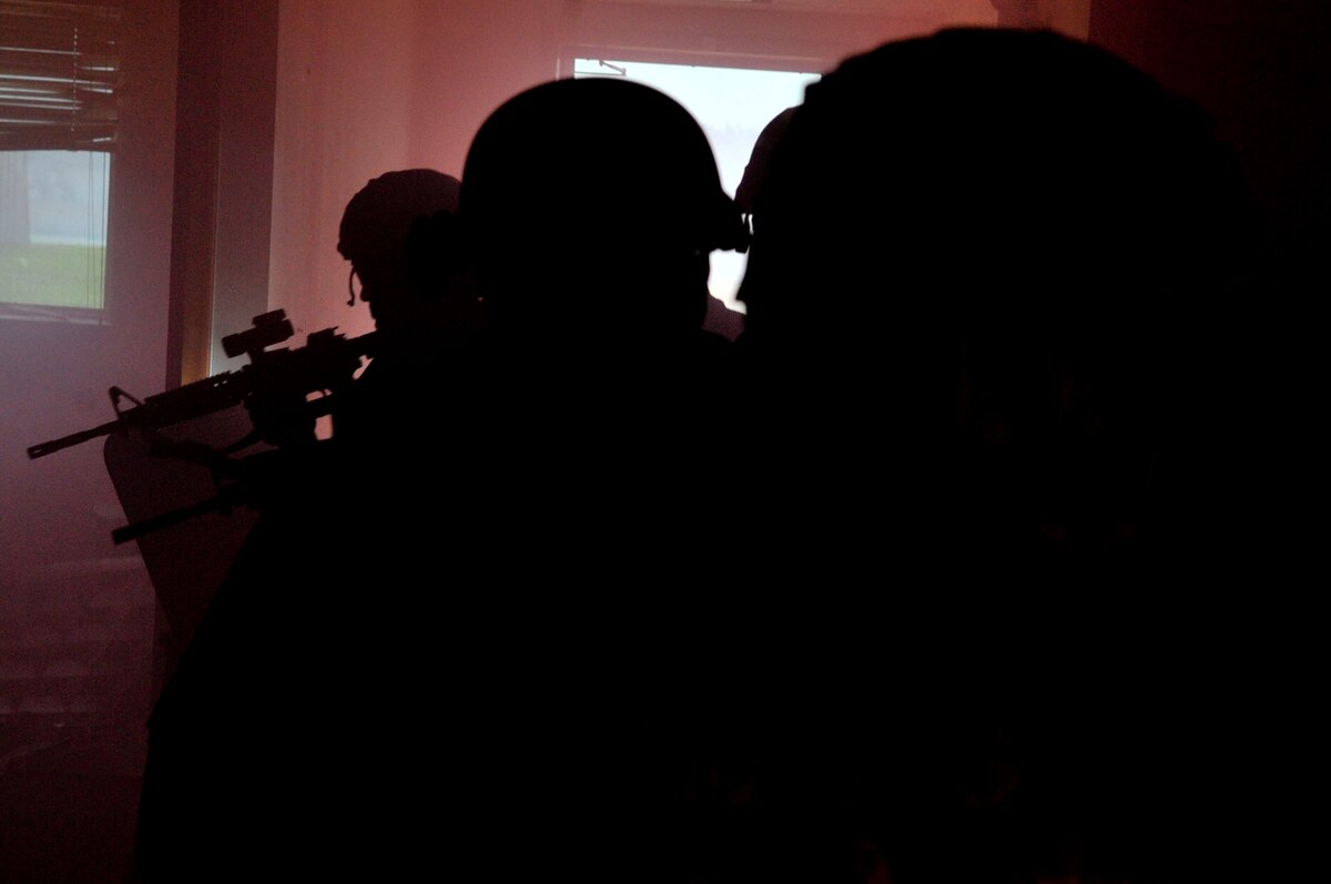 14 of the 27 Airman who volunteered, remain here, August 10. Day two and three of the QRT training, rigorous physical training continued as obstacles increased with difficulty testing [their] strength, hand-eye coordination and communications skills. SF Airmen were taught how to breech/clear buildings and received certification in the use of simulated ground burst projectiles. Day four SF Airmen performe active shooter on a bus scenarios. Physical training sessions were themed in memory of the 31 warriors lost in Afghanistan, August 7, by each volunteer completing 31 of each exercise throughout the course. A QRT member provides immediate response to any high risk situation on Osan Air Base to include barricaded suspects, workplace violence, domestic violence and abuse response, school violence, and disaster response. (U.S. Air Force Photo by/Staff Sgt. Daylena Gonzalez)