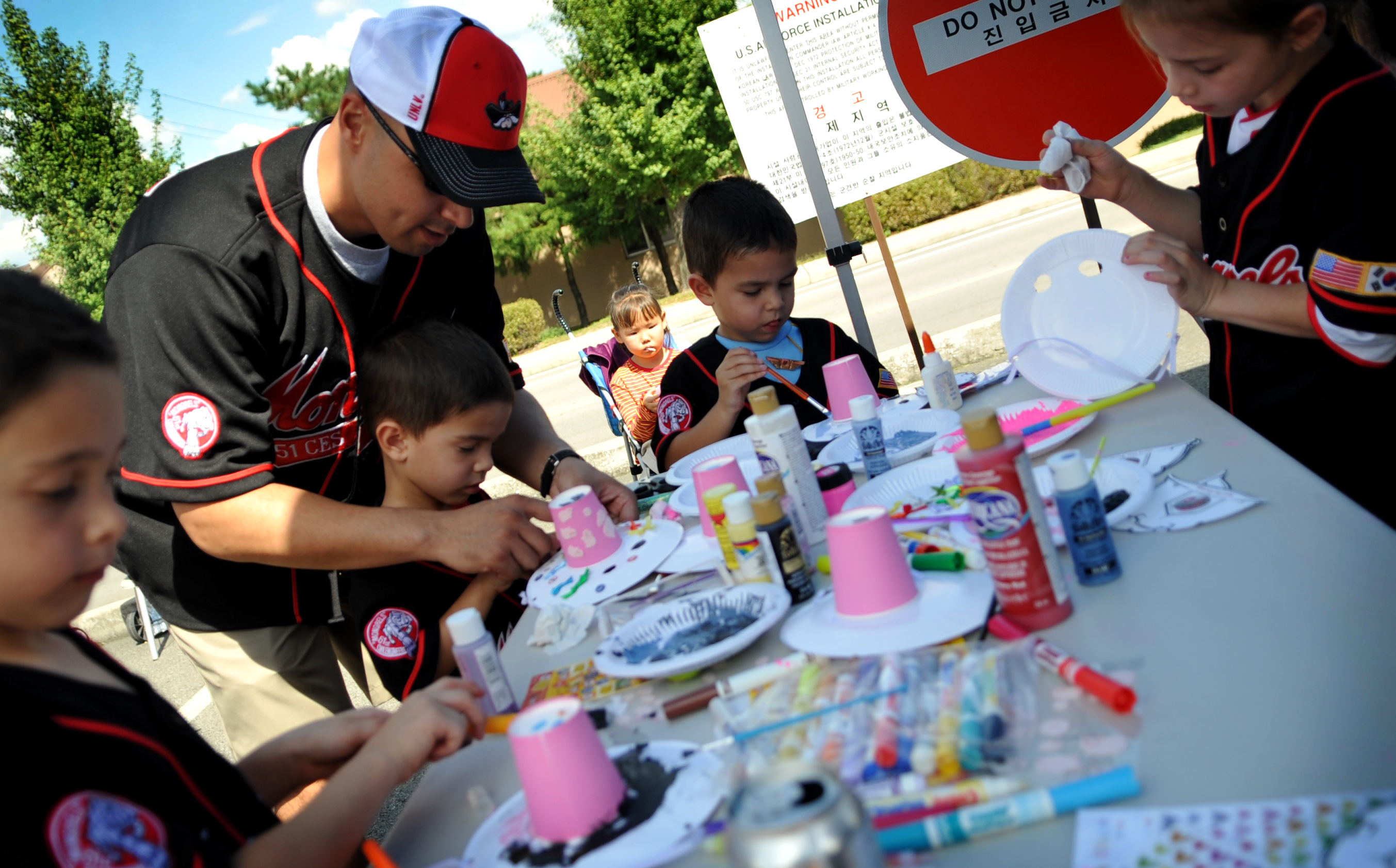 Capt. Gary Moore, 51st Civil Engineer Squadron, helps his kids paint during