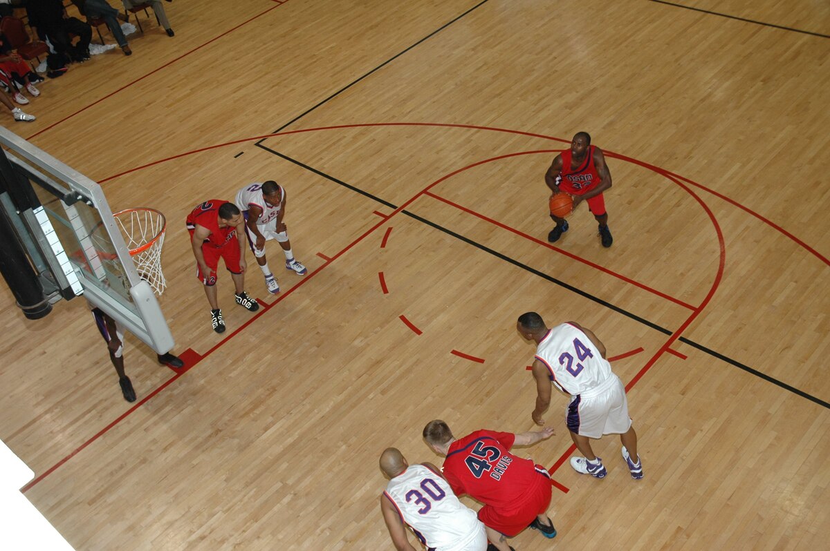 OSAN AIR BASE, Republic of Korea -- James Williams, No. 33 on the Team Osan basketball team, shoots his second free throw during his team’s game against Camp Casey on Sunday. Team Osan had a perfect season, winning all 45 games they played. They are currently in Kadena, Okinawa, to play in a Pacific Air Forces tournament against all other bases in the command. (U.S. Air Force photo by Senior Airman Brok McCarthy)