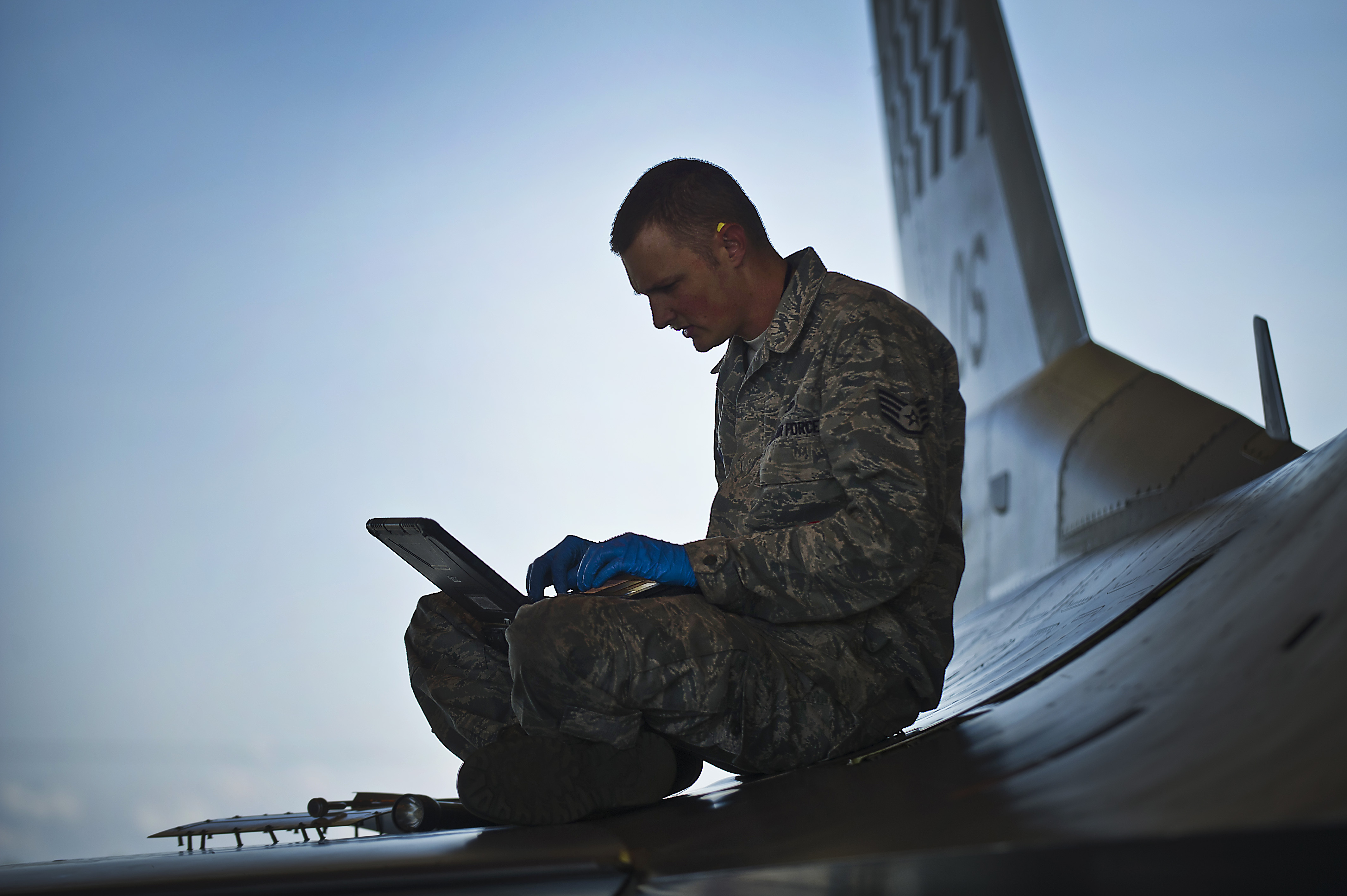 U.S. Air Force Staff Sgt. James Broome, 51st Aircraft Maintenance Squadron, Osan Air Base, Republic of Korea, crew chief, references an electronic technical order for F-16C Fighting Falcon June 18, 2012, during Red Flag-Alaska 12-2 at Eielson Air Force Base, Alaska. Red Flag-Alaska is a Pacific Air Forces-sponsored, joint/coalition, tactical air combat employment exercise which corresponds to the operational capability of participating units. The entire exercise takes place in the Joint Pacific Range Complex over Alaska as well as a portion of Western Canada for a total airspace of more than 67,000 square miles. (U.S. Air Force photo/Tech. Sgt. Michael Holzworth)