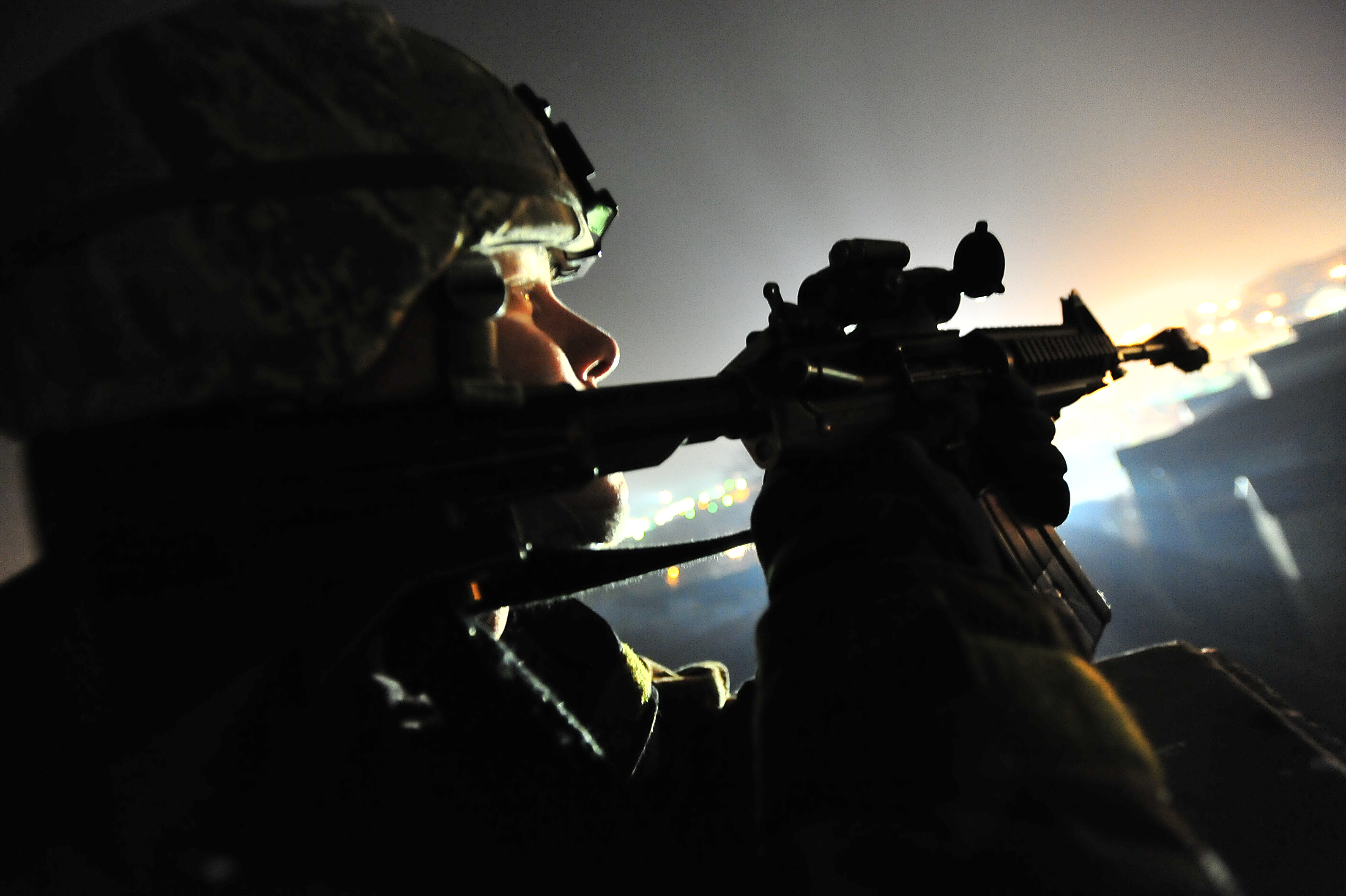 Staff Sgt. Luis Zayas, 51st Security Forces Squadron, Osan Air Base, Republic of Korea, keeps a watchful eye out for opposition forces from a rooftop outside the base's perimeter April 6. 51st Fighter Wing Airmen are participating in the 2011 Korea Pacific Command Operational Readiness Inspection. An ORI is conducted to evaluate and measure the ability of units with a wartime, contingency or force sustainment mission to perform operations plans and assigned tasks. Inspectable areas include initial response, employment, mission support and ability-to-survive and operate in a chemical environment. (U.S. Air Force photo/Senior Master Sgt. Paul Holcomb)