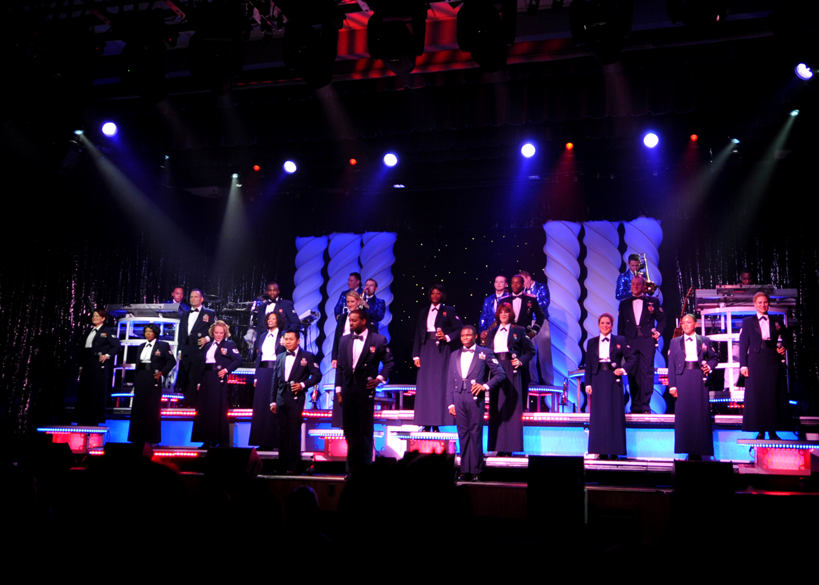 Members of Tops in Blue perform at Osan Air Base Jan. 9. The Tops in Blue 2010 World Tour "We Believe" is a salute to the ideals we believe in as Americans. The show featured rhythm and blues music, and renditions of songs from artists including Michael Buble, Lady Gaga and the Black Eyed Peas. (U.S. Air Force photo/Senior Airman Evelyn Chavez)