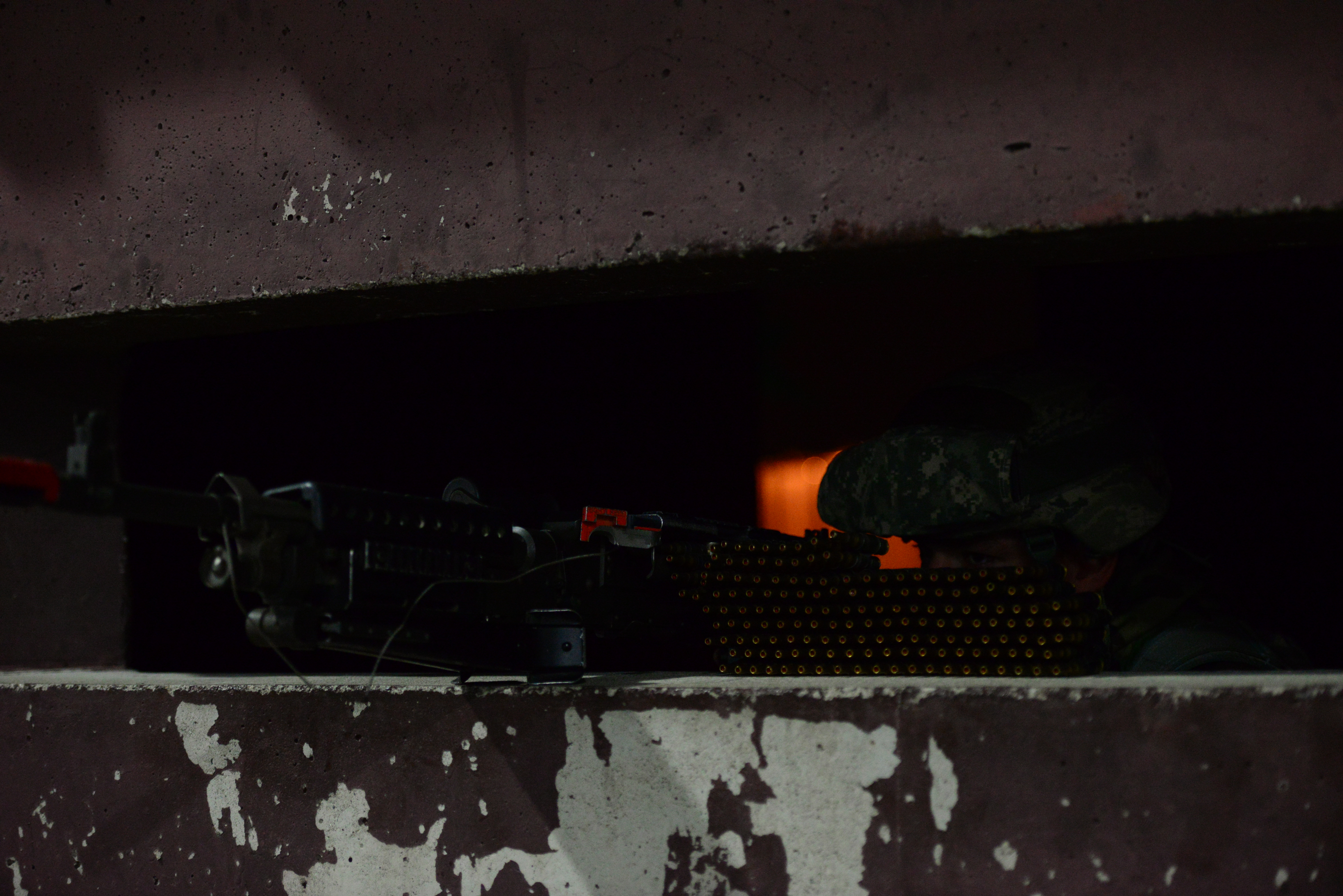 Airman Alexander Schrom lies in wait for an opposing forces attack on his defensive fighting position of the 51st Security Forces Squadron during exercise Beverly Midnight 15-03 at Osan Air Base, Republic of Korea, August 20, 2015. During this exercise, wing capabilities such as defending against simulated ground and aerial attacks and rapid-runway repair operations were tested. (U.S. Air Force photo/Staff Sgt. Amber Grimm)