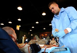 Ten members of a joint team from U.S. Pacific Command Armed Services Blood Bank Center in Okinawa, Japan, came to Osan for a blood drive Sept. 22-23. The PACOM Armed Services Blood Bank distributes blood products to Okinawa, 12 hospitals throughout PACOM, sevices afloat and deployed units of
