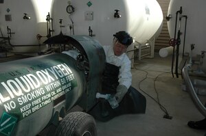 The cryogenic lab deals with materials that operate at sub-zero temperatures. Specially, Osan stores and uses liquid oxygen, or LOX, and liquid nitrogen, or LIN, for a variety of reasons to accomplish our mission. "Pilots depend on these," said Master Sgt Jason Owens, 51st Logistcs Readiness