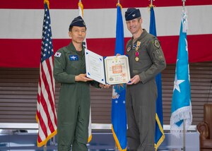 U.S. Air Force Airman Leadership School Class 23-E sings the Air Force Song upon graduating at Osan Air Base, Republic of Korea, Sept. 29, 2023. As the first level of professional military education for enlisted Airmen, ALS is designed to be an entry-level course to prepare Senior Airmen for
