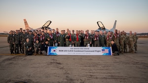 Chairman of the Joint Chiefs of Staff Gen. Dan Caine participates in a U.S.-Republic of Korea Combined Command Flight with Republic of Korea Chairman of the Joint Chiefs of Staff Gen. Jin Yong Sung at Osan Air Base, ROK, Nov. 3, 2025. The CJCS and other senior leaders arrived to participate in the